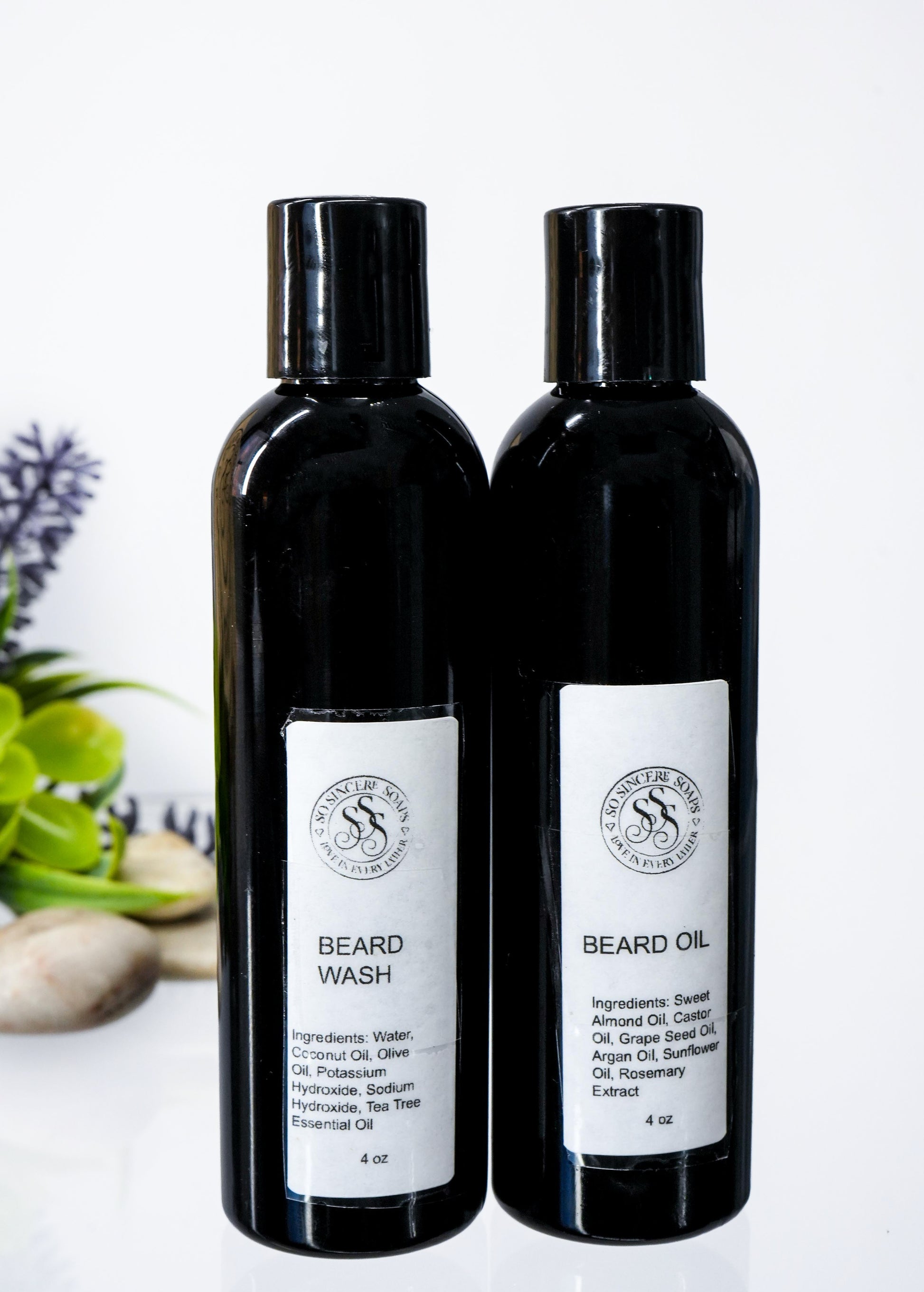 Beard Wash: Water, Coconut Oil, Olive Oil, Potassium Hydroxide, Sodium Hydroxide, Tea Tree Essential Oil